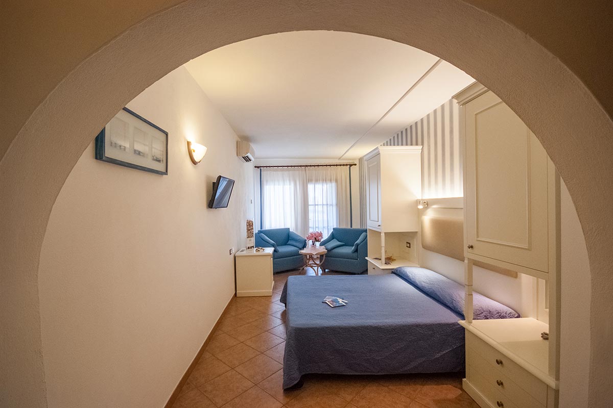 Nur wenige Schritte vom Strand und unserem Hotel entfernt bieten wir in unserer Dependance "Cala Azzurra" vier komplett renovierte und neu eingerichtete Einzimmerwohnungen für bis zu vier Personen, mit neuem Badezimmer, TV, Terrasse/Patio und Klimaanlage.