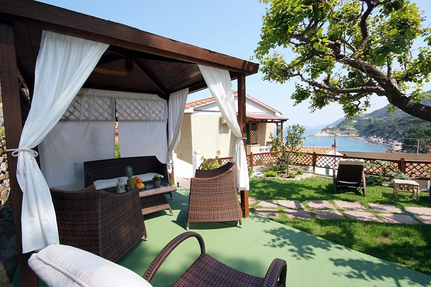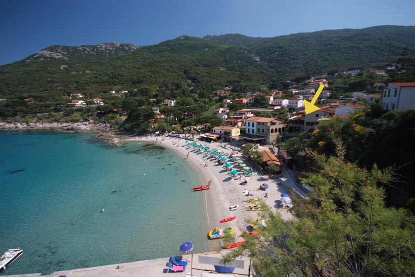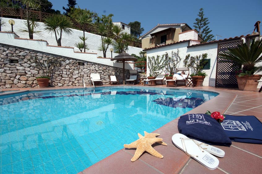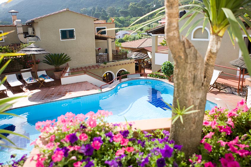Seuls quelques mètres séparent l'Hôtel Barsalini de la plage de sable doré de Capo Sant'Andrea : un endroit enchanté, un coin de paradis baigné dans le bleu de la mer et entouré des nuances de la garrigue méditerranéenne, généreuse en fleurs et parfums.