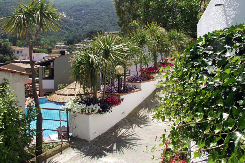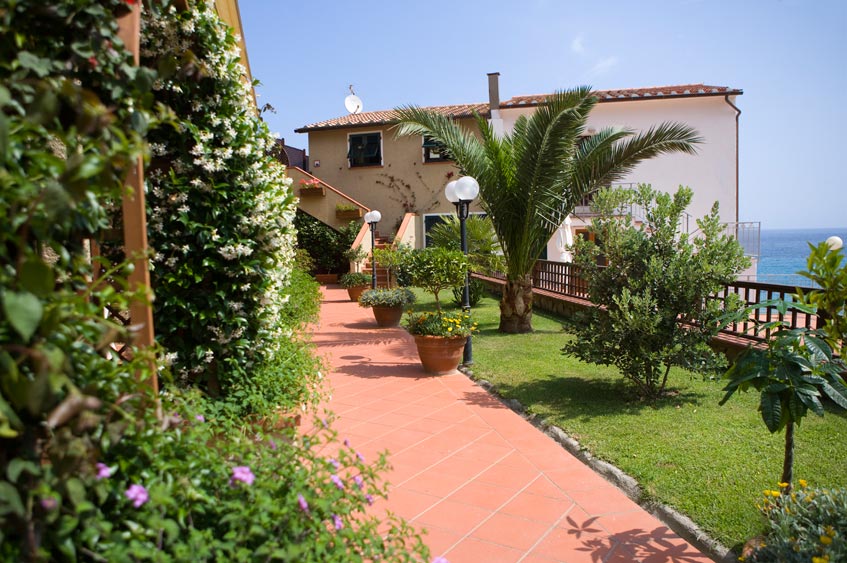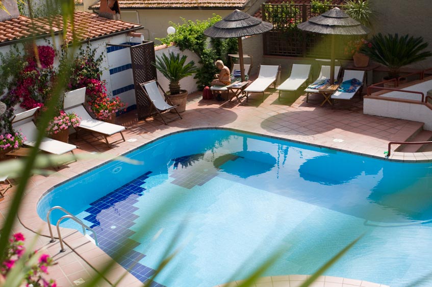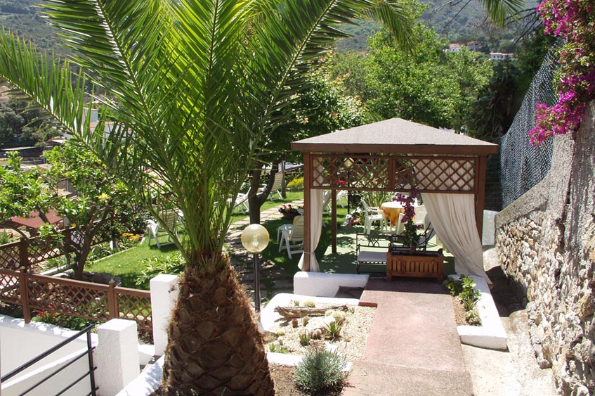 Cette atmosphère authentique est amplifiée par la luxuriance des jasmins, de la lavande, des citronniers, des géraniums et de toutes les espèces végétales qui entourent aussi bien le corps principal de l'Hôtel, où se trouvent la réception, le bar intérieur, le restaurant et quelques chambres, que les trois dépendances qui accueillent la plupart des chambres.