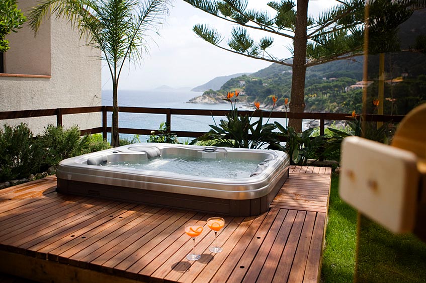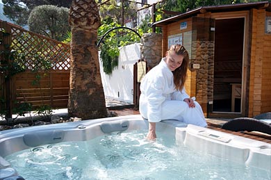 A questo scopo abbiamo allestito un piccolo spazio Relax esterno con vista mare - Il Giardino del Benessere - con idroterapia e sauna finlandese, dove profumi e rumori della natura si fondono per contribuire al vostro Benessere ....