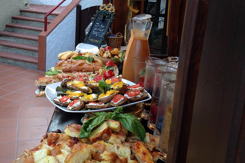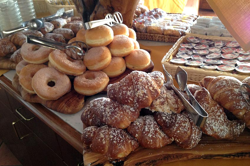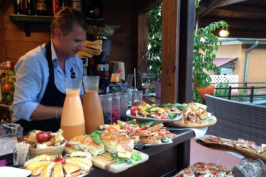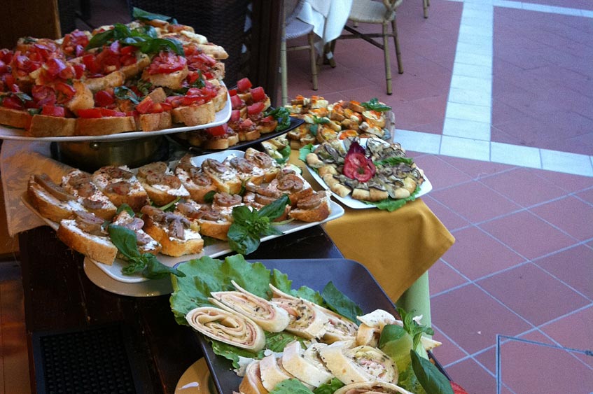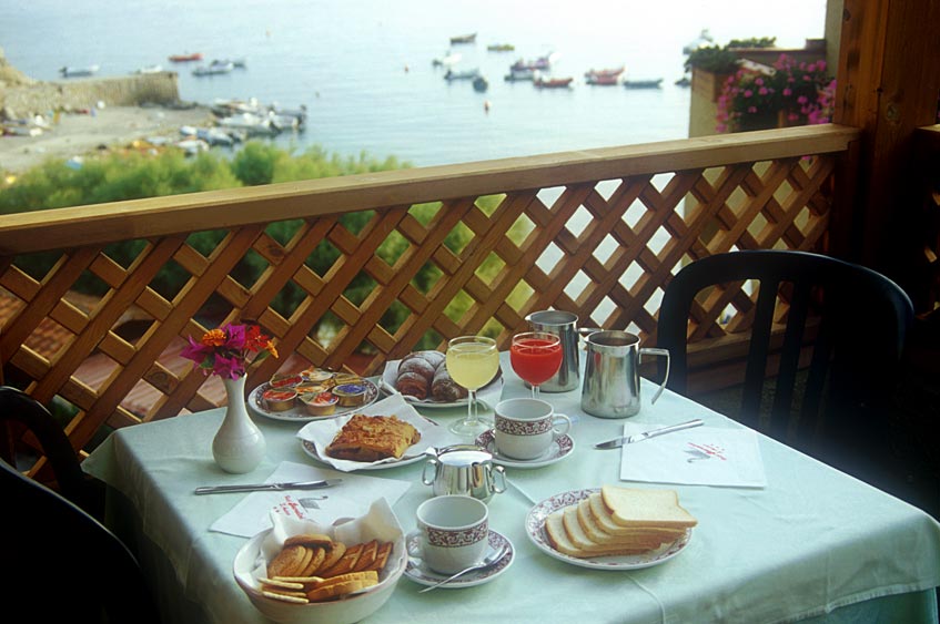 La colazione al buffet viene servita la mattina dalle 8,00 nel nostro ristorante e nei mesi estivi sulla terrazza panoramica che si affaccia sul mare mentre il pranzo e la cena sono serviti al tavolo.